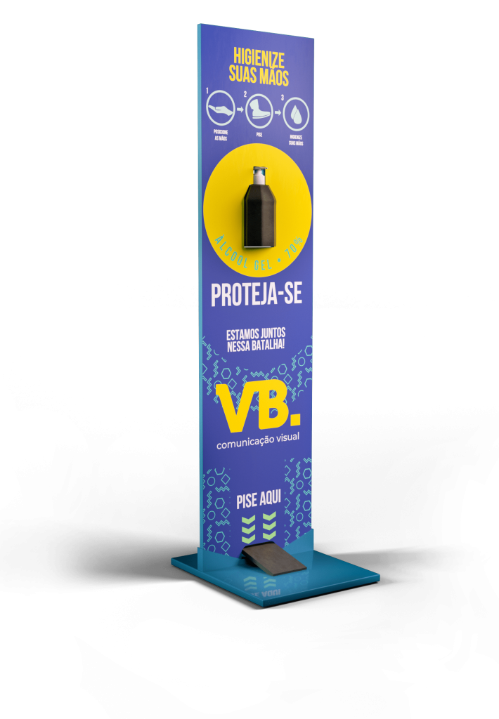 O Totem álcool gel com pedal é perfeito para resolver onde deixar o frasco de álcool gel para seus clientes ou de ter um funcionário pra ficar aplicando nas mãos de cada um, além de ser um excelente instrumento para divulgação da marca da sua empresa.
